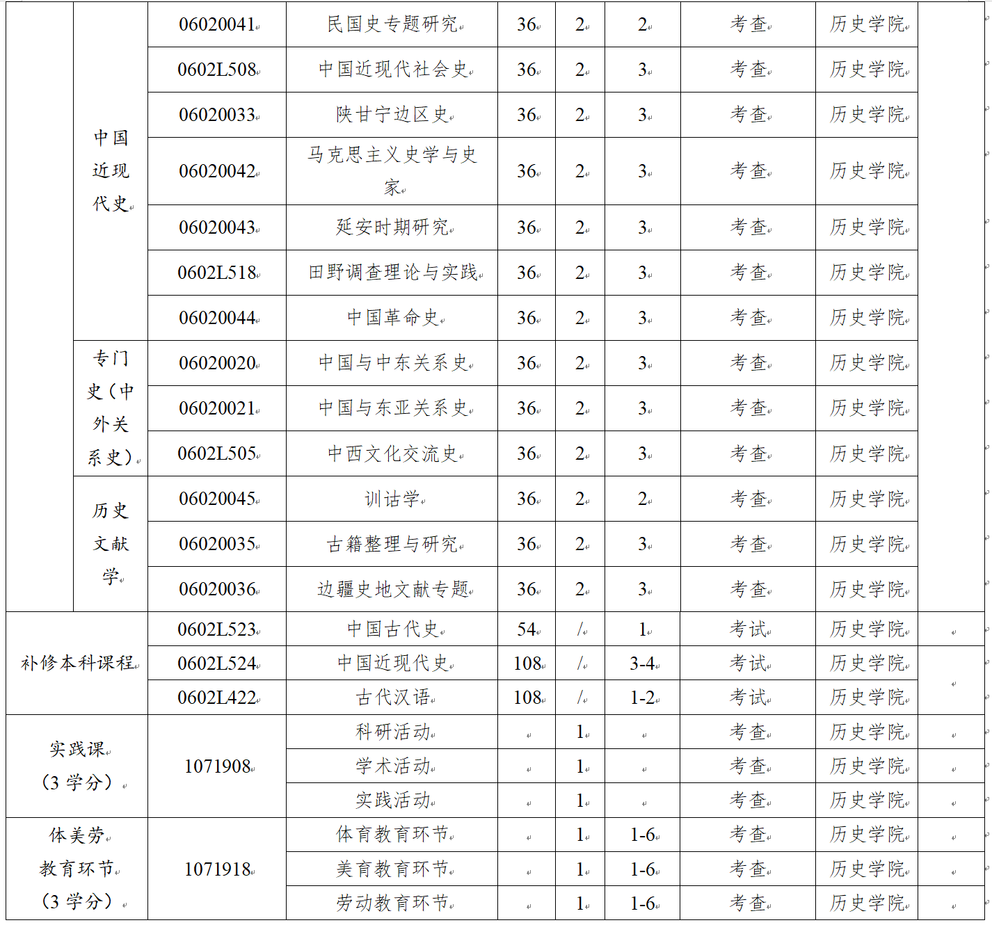 中国史专业研究生应参加实践活动,由导师或院系研究生管理人员负责考核,考核合格后获得 1 个学分。主要形式有: